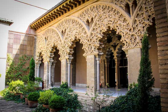 Nos adentraremos en su interior y veremos la sede actual de las Cortes de Aragón. Nos fijaremos en la majestuosidad de sus salones, sus patios llenos de historia y en la cuidada ornamentación mudéjar que adorna cada rincón. Mientras, iremos descubriendo la larga y compleja historia tanto del palacio de la Aljafería, como la de Aragón en su conjunto.