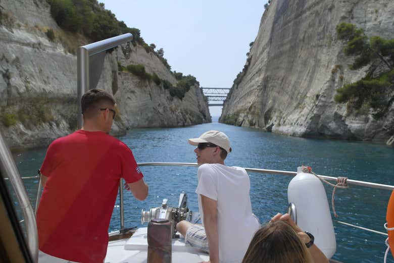 Le départ est imminent et vous entreprendrez la navigation sur le canal de Corinthe, un voyage d'une heure et demie à bord d'une embarcation à fond de verre de 17 m de long.