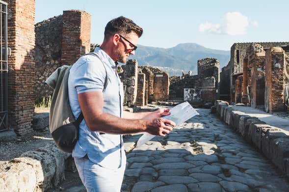 À votre arrivée à Pompéi, un guide attendra à la gare pour vous indiquer comment vous rendre sur le site des ruines de Pompéi. La veille de la visite, vous recevrez votre billet pour Pompéi et les instructions pour télécharger l'audioguide. Il n'est pas nécessaire de vous rendre à la billetterie de Pompéi pour échanger votre billet.