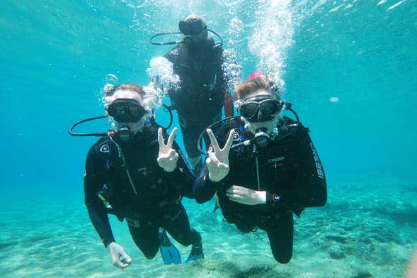 Une fois que vous aurez tout assimilé, vous plongerez dans les eaux d'une des plages d'Agia Pelagia pour mettre en application les connaissances que vous aurez acquises. La plongée durera environ 40 minutes à une profondeur de 6 m. Vous admirerez la faune et la flore marine du nord de la Crète tout en vous baignant dans ses eaux cristallines. Vous allez adorer !