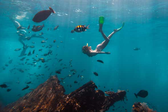 En seulement 30 minutes, nous arriverons sur les plages situées à 10 kilomètres à l'est de La Havane. Avant d’aller dans l’eau, vous réaliserez un bref échauffement pendant lequel nous vous expliquerons les règles de sécurité de base. Ensuite, nous enfilerons les masques, les palmes, les tubas et pourrons commencer à faire du snorkeling. Pendant que vous serez dans l’eau, deux guides qui auront des bouées à disposition vous accompagneront pour vous offrir plus de sécurité.