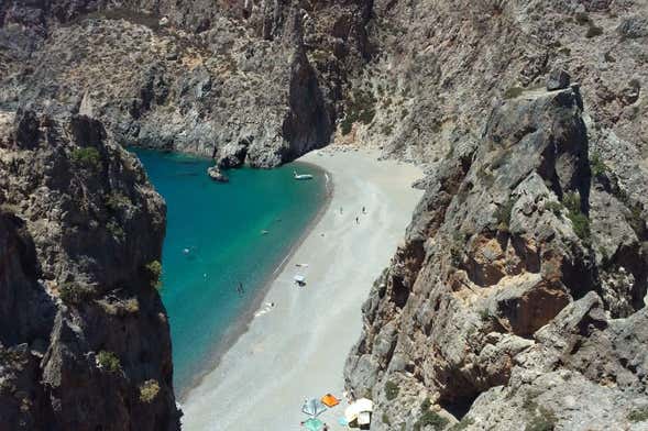 La balade continuera et vous vous arrêterez à l'entrée de la gorge d'Agiofarago. Ici, vous pourrez commencer une balade à pied dans les gorges, en admirant la magnifique nature de la région. Après 20 minutes de marche, vous découvrirez la plage d'Agirofarago, où vous pourrez vous baigner dans des eaux transparentes et déjeuner dans un restaurant local, où vous profiterez d'un menu composé d'un plat principal, d'une salade et d'un dessert.