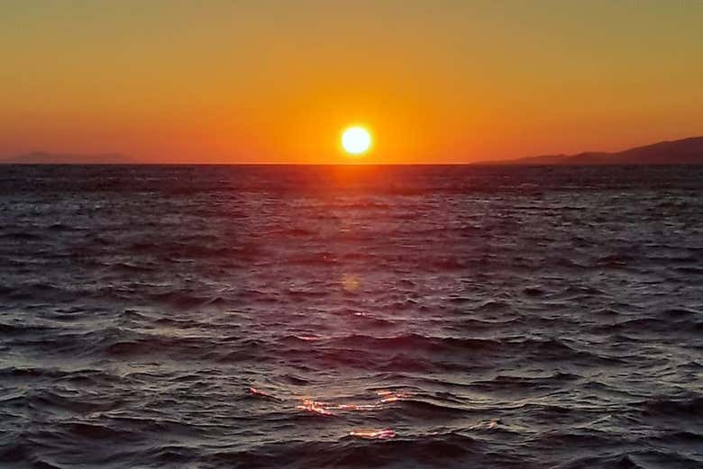 Après cette expérience magique, vous terminerez la croisière au coucher du soleil autour de Mykonos en retournant au point de départ après deux heures d'activité.