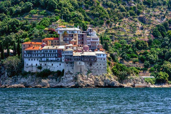 Lorsque vous atteindrez la frontière de la région du Mont Athos, vous commencerez à naviguer le long de la côte pour voir les imposants monastères qui se dressent au bord des falaises. Ouvrez l'œil pour découvrir le monastère serbe de Chilandariou, Dochiarioy, Xenophontos et bien d'autres.