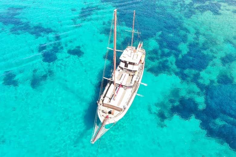 Vous pourrez aussi en profiter pour faire du snorkeling et découvrir la diversité des fonds marins à votre rythme. Par ailleurs, le bateau s'approchera de l'île d'Antiparos, connue entre autres pour abriter la seule grotte naturelle de stalactites et stalagmites des Cyclades.