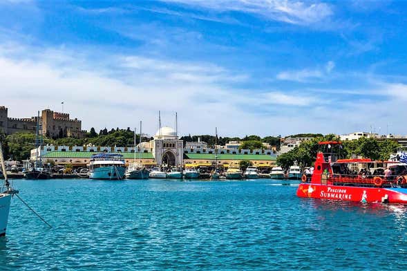 À l'heure de votre choix, nous vous retrouverons au port de Mandraki. Là, vous monterez à bord d'un bateau à fond de verre pour commencer à naviguer sur les eaux de Rhodes et vous émerveiller devant ses paysages sous-marins. Mettez les voiles !