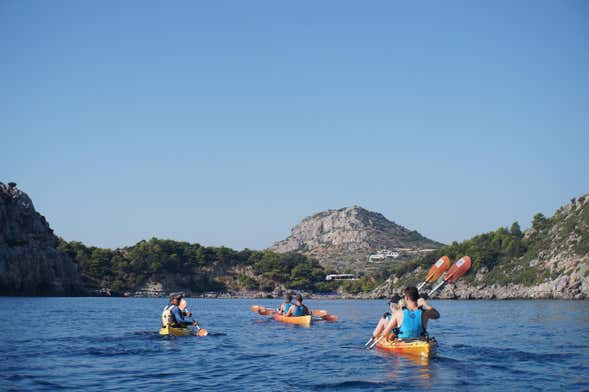 Vous monterez sur les kayaks et commencerez à pagayer depuis la plage de Kathara à Faliraki. Vous entrerez alors dans les impressionnantes eaux émeraude qui entourent cette île grecque. Au fur et à mesure de la progression, vous apprendrez à découvrir les magnifiques formations rocheuses au large de la côte de Rhodes.