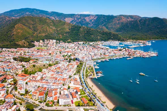 Nous vous accompagnerons jusqu'à l'embarcadère, où vous monterez à bord d'un bateau qui vous conduira jusqu'à Marmaris en une heure seulement. Une fois arrivés dans la ville turque, nous vous attendrons pour vous montrer les lieux les plus incontournables de cette ville côtière.