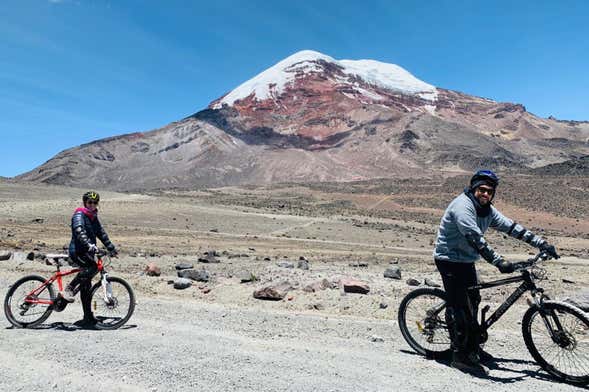 Vous ferez une courte marche vers un deuxième refuge pour voir la lagune Condorcocha, à 5100 mètres d'altitude. Vous descendrez ensuite au camp Hermanos Carrel pour commencer une balade à vélo du volcan Chimborazo.