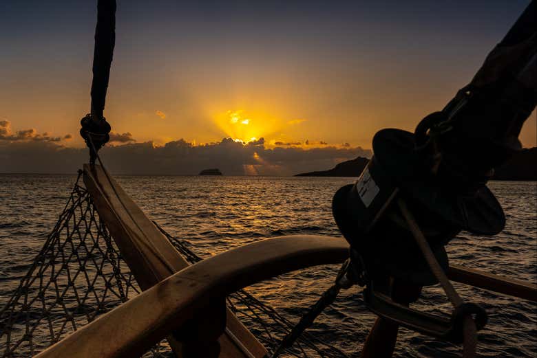 Après avoir nagé dans ces eaux chaudes, vous retournerez au bateau et naviguerez autour de la caldeira de Santorin. Sur le chemin du retour, vous pourrez prendre de magnifiques photos du paysage et des maisons qui sont littéralement accrochées au bord de la falaise. Le tout combiné aux belles couleurs du coucher de soleil, vous vivrez une expérience magique en mer Égée.