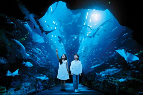 Uno dei punti più affascinanti della visita è il tunnel dell'acquario. Camminerete sott'acqua mentre osservate diversi esemplari di mante giganti, squali e centinaia di pesci. In più, vedremo il personale dello zoo intento a dar da mangiare agli animali!
