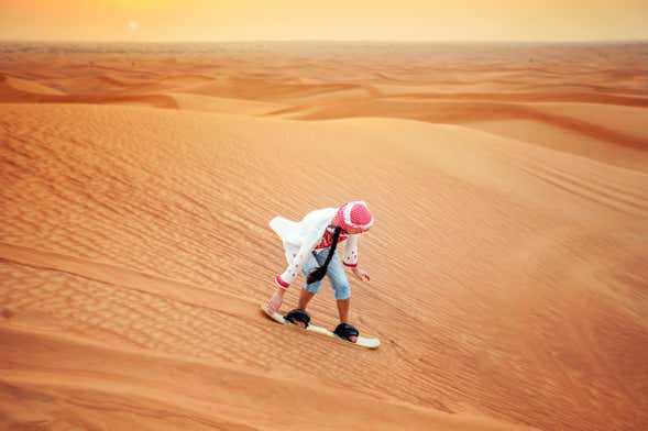 Scivoleremo sulle dune del deserto per un'ora e, man mano che ci sentiremo più sicuri, prenderemo velocità. Vi porteremo a un luogo in cui le dune avranno diverse altezze, in modo tale da essere adatte a tutti i livelli, per poter godere al massimo dell'esperienza.
