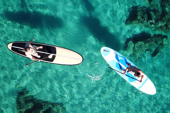 Saliremo sulle tavole da paddle surf e inizieremo a remare lungo la costa in direzione di uno degli angoli più belli di Jávea: Cala Tangó. Vi innamorerete del colore delle sue acque!