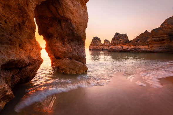 Scegliendo questa modalità, contemplerete le scogliere più spettacolari di Lagos. Attraverseremo le imponenti formazioni rocciose della zona e accederemo alle grotte di Ponta da Piedade, uno degli angoli più famosi dell'Algarve. Il colore dorato delle rocce e le curiose figure che l'erosione del vento e dell'acqua ha scolpito su queste scogliere hanno reso Ponta da Piedade una delle grandi attrazioni del sud del Portogallo.
