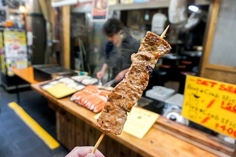 Ci dirigeremo verso il mercato Kuromon, situato a cinque minuti a piedi dal nostro punto di incontro. Una volta raggiunto questo luogo dalla storia secolare, assaggeremo alcuni manicaretti tradizionali. Parteciperete a cinque piccole degustazioni!