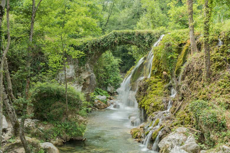 Giunti di fronte alle cascate, nascoste da frondosi alberi, resteremo incantati dai giochi di luce prodotti dai riflessi dorati del sole sull'acqua e sulla vegetazione circostante. Alzando lo sguardo, poi, ammireremo i resti di un ponte normanno in pietra che fa da cornice a questo idilliaco scenario. Un'immagine da cartolina!