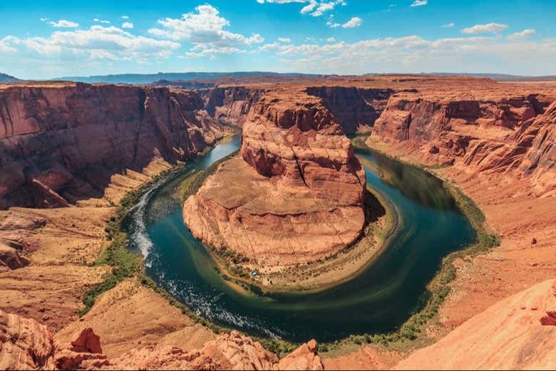 In seguito, ci avvicineremo all'Horseshoe Bend. State per ammirare uno dei paesaggi più fotografati degli Stati Uniti! Saliremo su un punto panoramico a 1.300 metri sul livello del mare, da dove ammireremo la famosa ansa del fiume Colorado e la sua forma a ferro di cavallo.