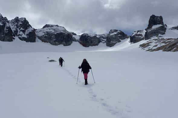 Dopo questa pausa, della quale approfitteremo per ricaricare le pile con un tè, un caffè o un mate, arriveremo alla base dell'Ojo del Albino. Una volta qui, ci cimenteremo negli ultimi 10 chilometri del percorso, durante i quali saliremo di 1200 metri per raggiungere il ghiacciaio vero e proprio.