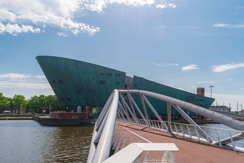 Se você estiver em Amsterdam e gosta de ciência, não perca seu ingresso do NEMO Science Museum, o mais importante do gênero na Holanda. Projetado pelo renomado arquiteto Renzo Piano, esse espaço original foi inaugurado em 1997. Ele se destaca por sua característica forma de barco e uma fachada cor de cobre que, com o tempo, adquiriu um tom esverdeado especial.