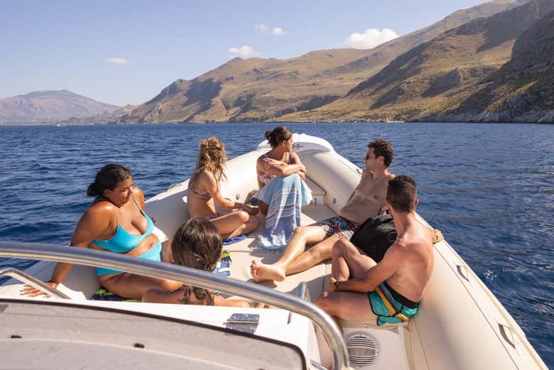 Com o apetite saciado, retomaremos a navegação passando pela Reserva Natural de Zingaro em direção à Cala Tonnarella dell'Uzzo, Cala Leone e Grotta Blu. Lugares perfeitos para tirar lindas fotos de recordação!