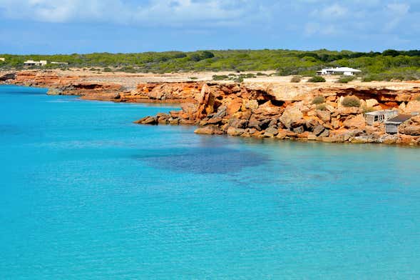 Desfrutaremos da brisa do mar enquanto margeamos a ilha de barco até Cala Saona e pararemos na metade da excursão para um mergulho em mar aberto. Toda uma aventura!