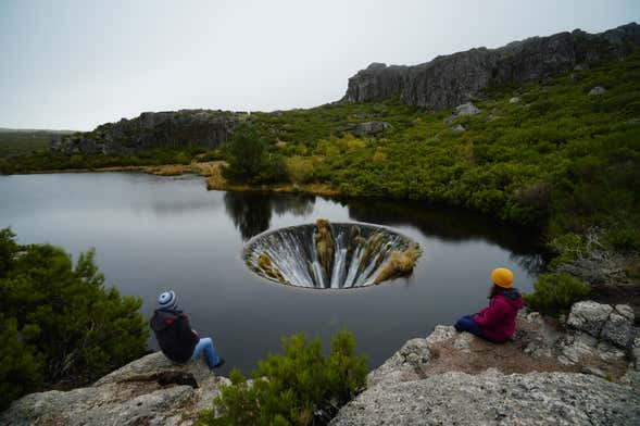 Desse ponto, começaremos nosso percurso a pé, de aproximadamente 4,3 quilômetros, até chegar ao Covão dos Conchos. Lá, você descobrirá o mistério que esconde esse buraco situado no meio de um lago e por onde caem litros de água cada dia. Lhe encantará!