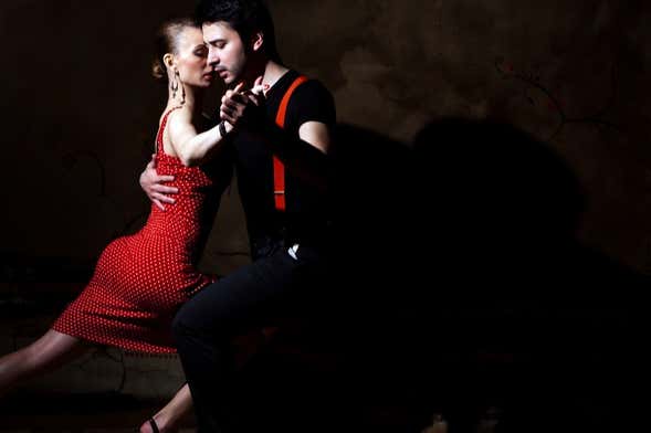 Se você preferir, oferecemos a opção de reservar o espetáculo com jantar, que inclui um menu de entrada, prato principal, sobremesa e bebidas (água, refrescos e vinho). Assim, você degustará um completo jantar tradicional, enquanto assiste a uma dança candombe.