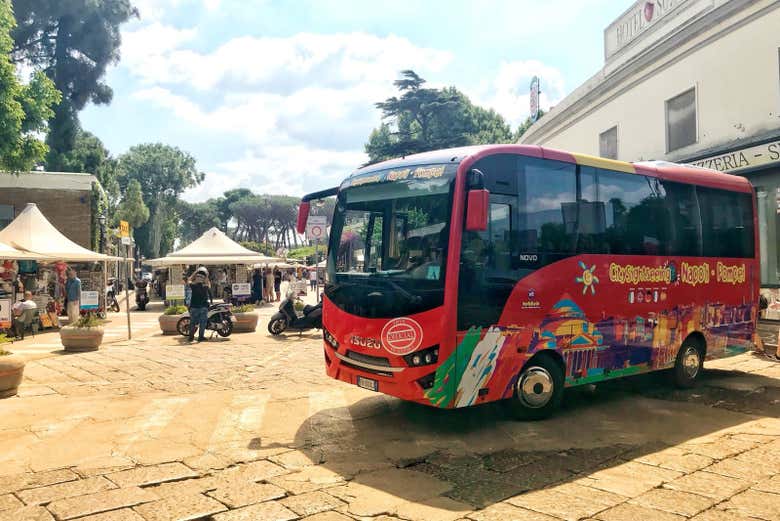 Ônibus turístico de ida e volta entre Nápoles e Pompeia.