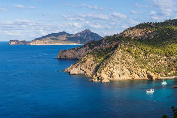 Depois, navegaremos até o Port d'Andratx , um povoado no litoral aos pés da serra de Tramontana. Lá, você terá 40 minutos livres para passear pela doca, pelo mercado de peixes e admirar os barcos do porto mais exclusivo de Mallorca.