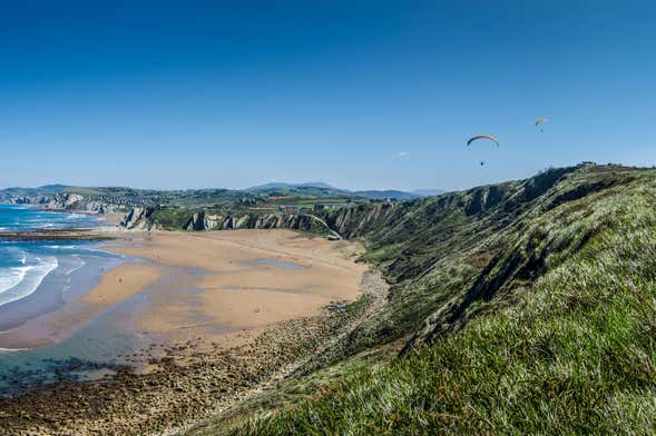 Se você reservar esta modalidade, sobrevoaremos as espetaculares praias de Sopelana durante 20 minutos. Nesse tempo, você viverá uma aventura inesquecível navegando os céus de Bizkaia, contemplando o mar Cantábrico e as imponentes falésias da Costa Basca.